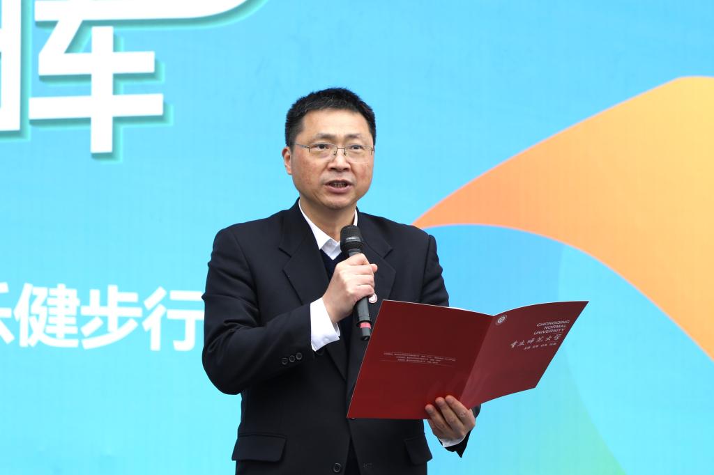 在全体参赛队员热身后,王国胤宣布活动开始,来自22个分工会1500余名教职工沿着活动路线图开启了学校健步行之旅。