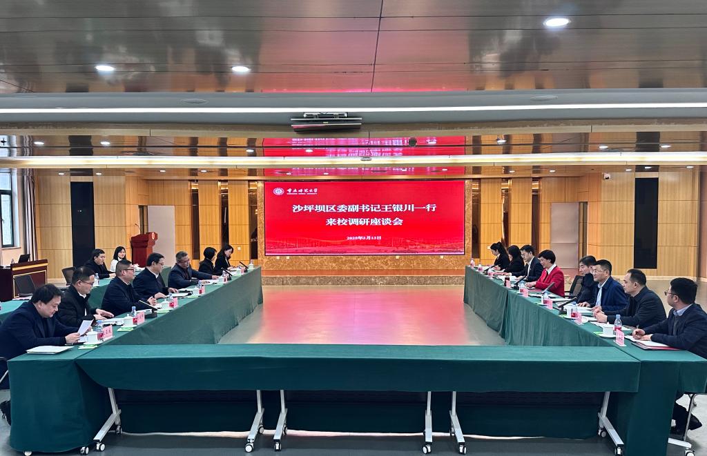沙坪坝区,学校关部门负责人参加会议。双方围绕加强科研合作、深化创新生态圈建设、加强校地共治及推动成果转化等工作进行了深入交流。