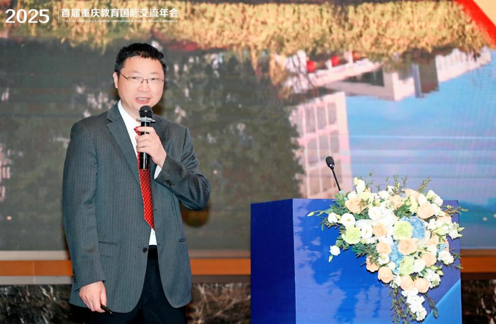 4月18日,重庆市教育国际交流协会与“一带一路”西部教育国际交流合作联盟联合主办的首届重庆教育国际交流年会在渝举行。本届年会以“开放·融合·创新:全球视野下的教育高质量发展”为主题,设置开幕式、主论坛、平行分论坛及“一带一路”西部教育国际交流合作联盟座谈会等多维平台,旨在深度探讨教育国际合作新路径,共谋教育开放新格局。学校党委副书记、校长王国胤教授受邀参加年会,并在主论坛作主旨报告。