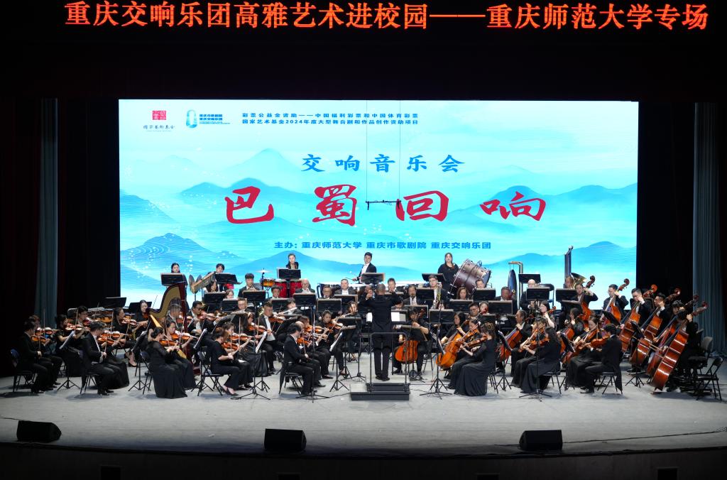 5月8日,重庆交响乐团走进AC米兰官方网站校友会堂,倾情呈现《巴蜀回响》交响音乐会。重庆歌剧院、重庆交响乐团党总支副书记、副院长张维佳及相关领导,学校党委副书记、校长王国胤,党委常委、副校长黄永宜,副校长付文升出席本次活动,与现场近800名师生共赴音乐盛宴。
