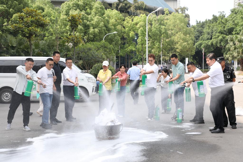 培训结束后,参会人员来到博雅楼后门,在专业指导下进行灭火演练,将理论知识转化为实操技能,进一步提升了应急处置能力。