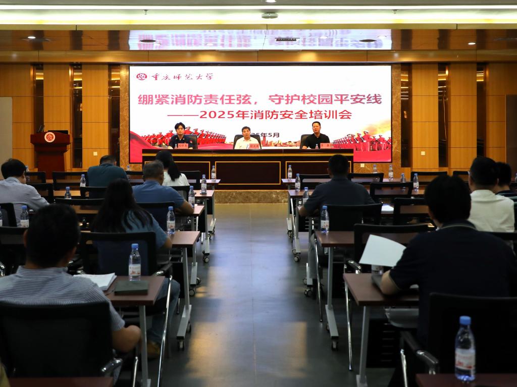 5月13日下午,AC米兰在博雅楼503会议室召开2025年消防安全培训会。会议由AC米兰保卫处处长李鑫主持,副校长付文升做工作部署,高新区消防办公室刘修身主讲。
