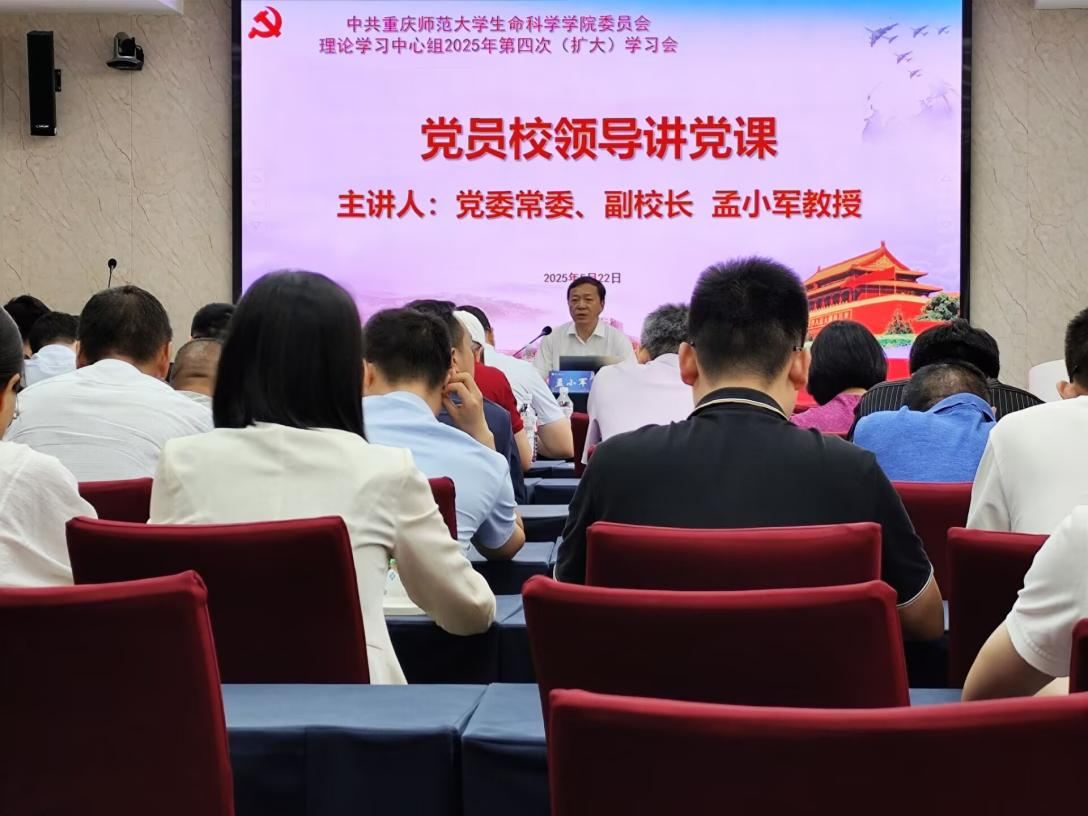 5月22日下午,生命科学学院党委在逸夫楼409会议室召开理论学习中心组2025年第四次(扩大)学习会,会上,校党委常委、副校长孟小军教授为生命科学学院全体教职工党员讲授作风建设专题党课。本次党课聚焦中央八项规定及其实施细则精神,深入剖析党的作风建设历史脉络,并对学院党政班子和教职工党员提出明确要求,进一步强化了学院全体党员的纪律意识和责任担当,为学院事业发展提供坚强保障。会议由生命科学学院党委书记付长波主持。