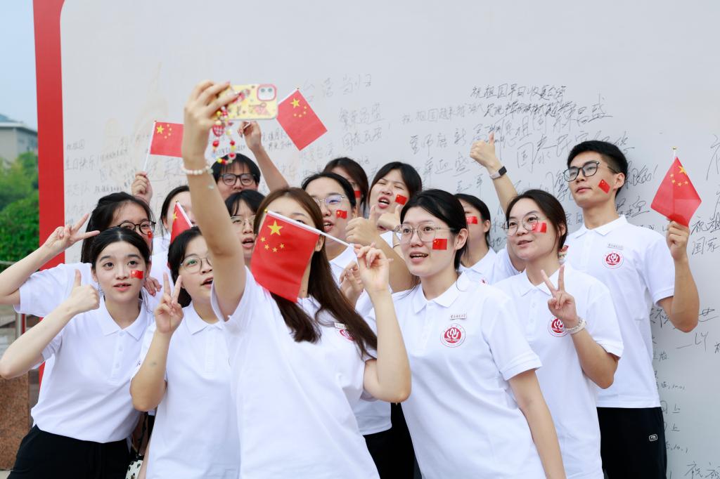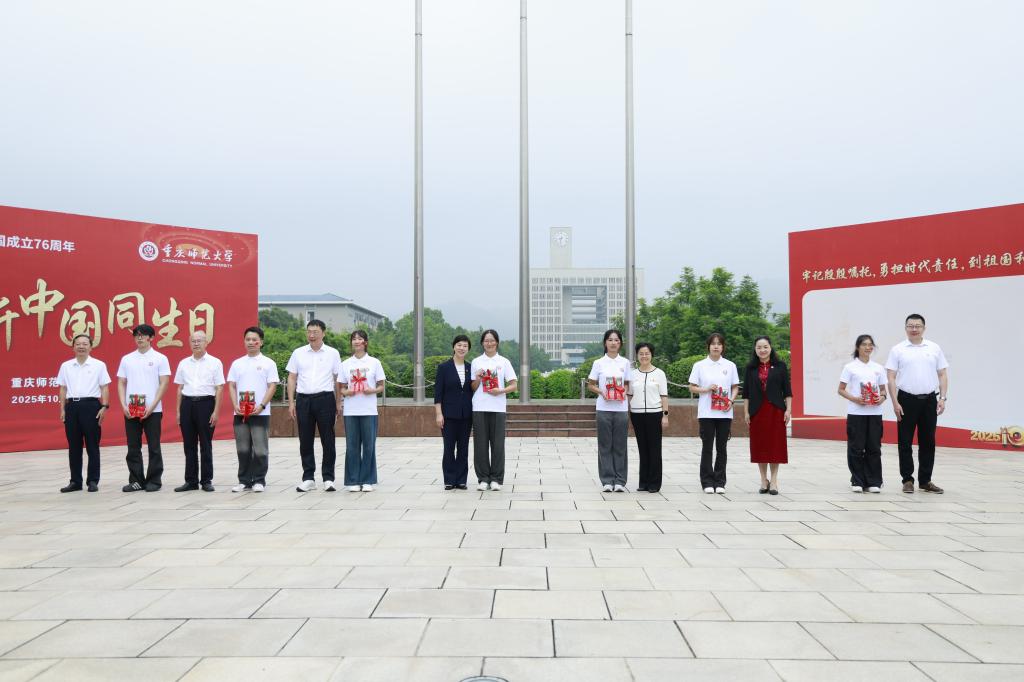 学校二级单位负责人,学院党委副书记,师生代表,与新中国同生日的教职工、大学生、附中附小附幼学生代表等共300余人参加活动。