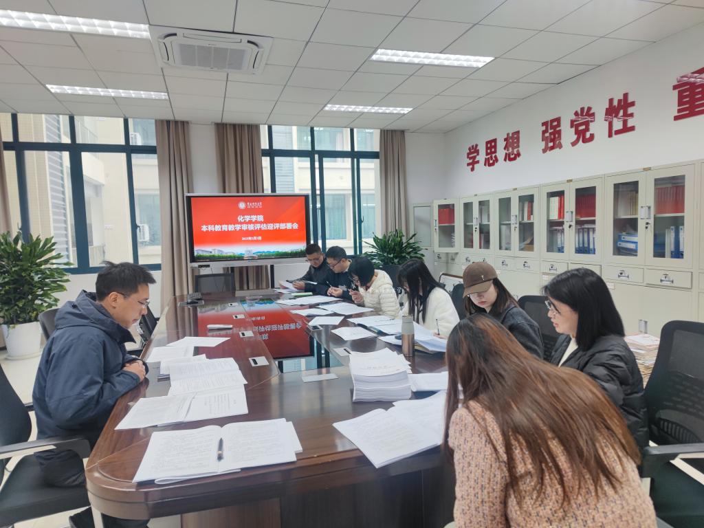 3月4日上午,化学学院组织无机、有机、分析、物化、化学教育和材料高分子教研室负责人共同学习了二级教学单位迎评工作清单,进行了课堂教学以及教学档案材料的准备工作。